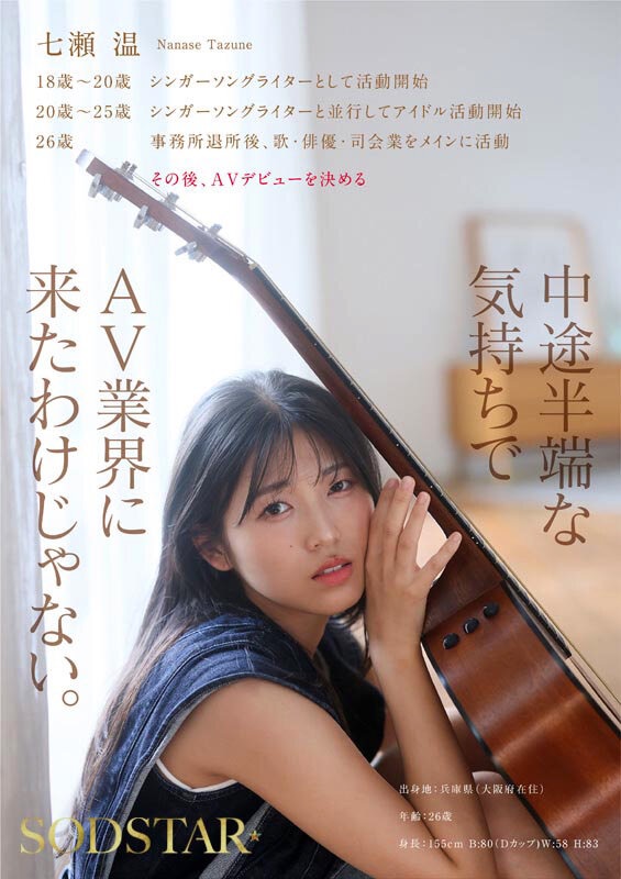 - SODSTAR×ソロアーティスト 芸能人 七瀬温-たずね-AV DEBUT(2026/4/9、SODクリエイト)